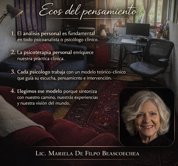 En general, cuando uno estudia, empieza a relacionar lo que lee con su propia vida. Por eso, desde mi época de estudiante universitaria, tuve mi espacio de análisis personal para revisar y comprender mi modo de funcionamiento, enriquecer mi personalidad y mi carácter, y resolver mis conflictos. Este camino de psicoterapia personal es muy importante en la formación profesional de un psicólogo que se dedica a la clínica; los psicoanalistas lo tenemos muy incorporado.